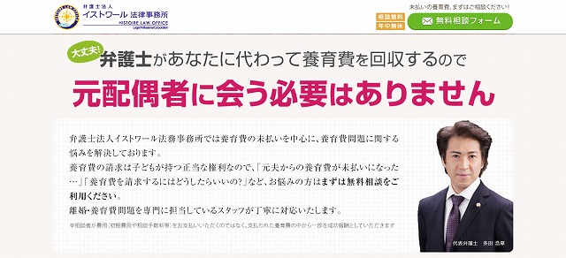 弁護士法人イストワール法律事務所では養育費の未払いを中心に、養育費問題に関する悩みを多数解決してきました。離婚・養育費問題を専門に担当しているスタッフが丁寧に対応いたします。相談者が費用(初期費用や相談手数料等)を支払うのではなく、元夫から支払われた養育費の中から一部を成功報酬としますので、手持ち資金が乏しい方も安心して依頼できます。